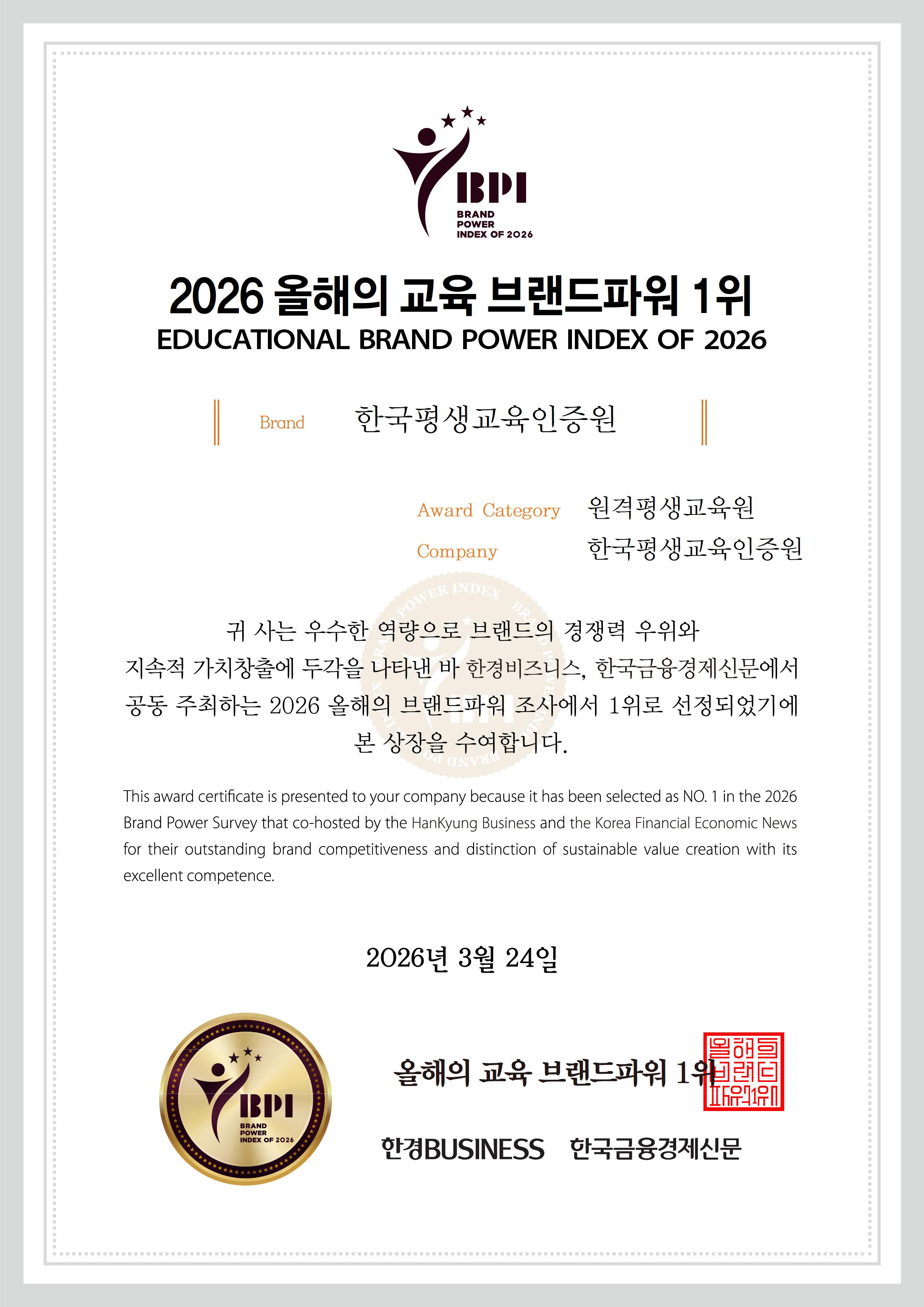 2026.03 2026 ¿ÃÇØÀÇ ºê·£µåÆÄ¿ö 1À§ ¼ö»ó