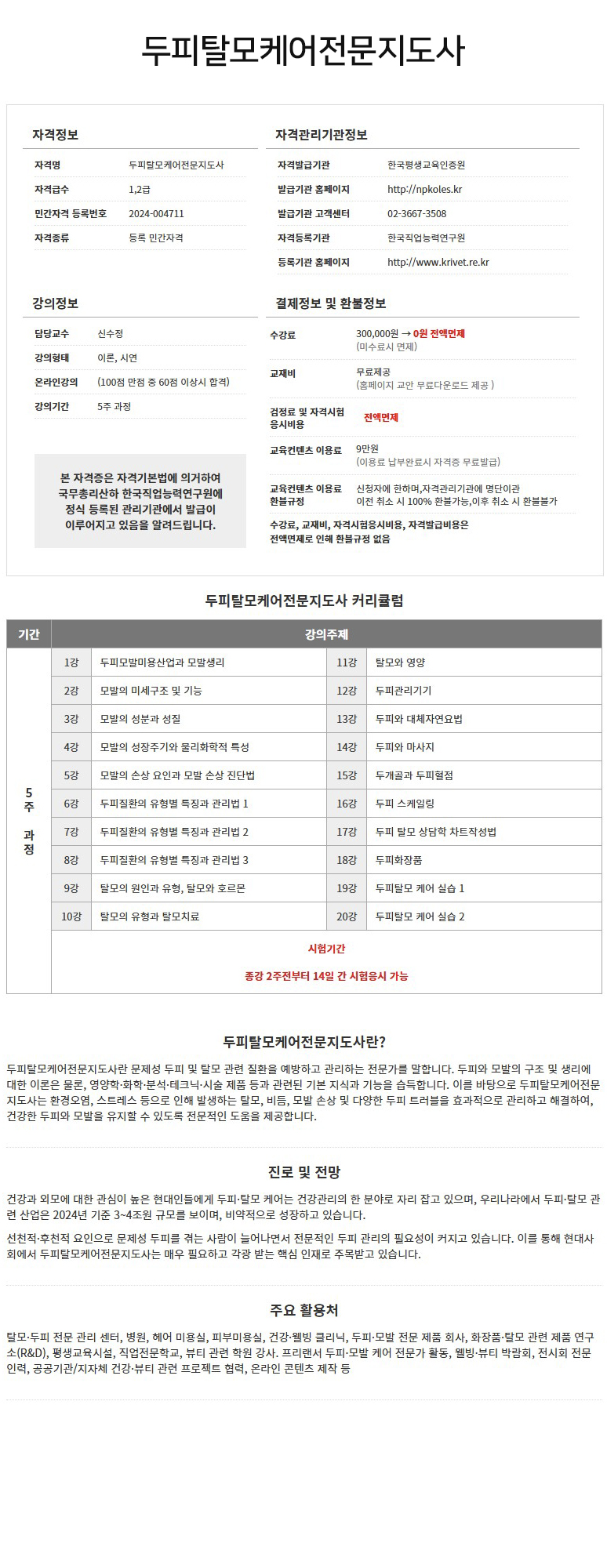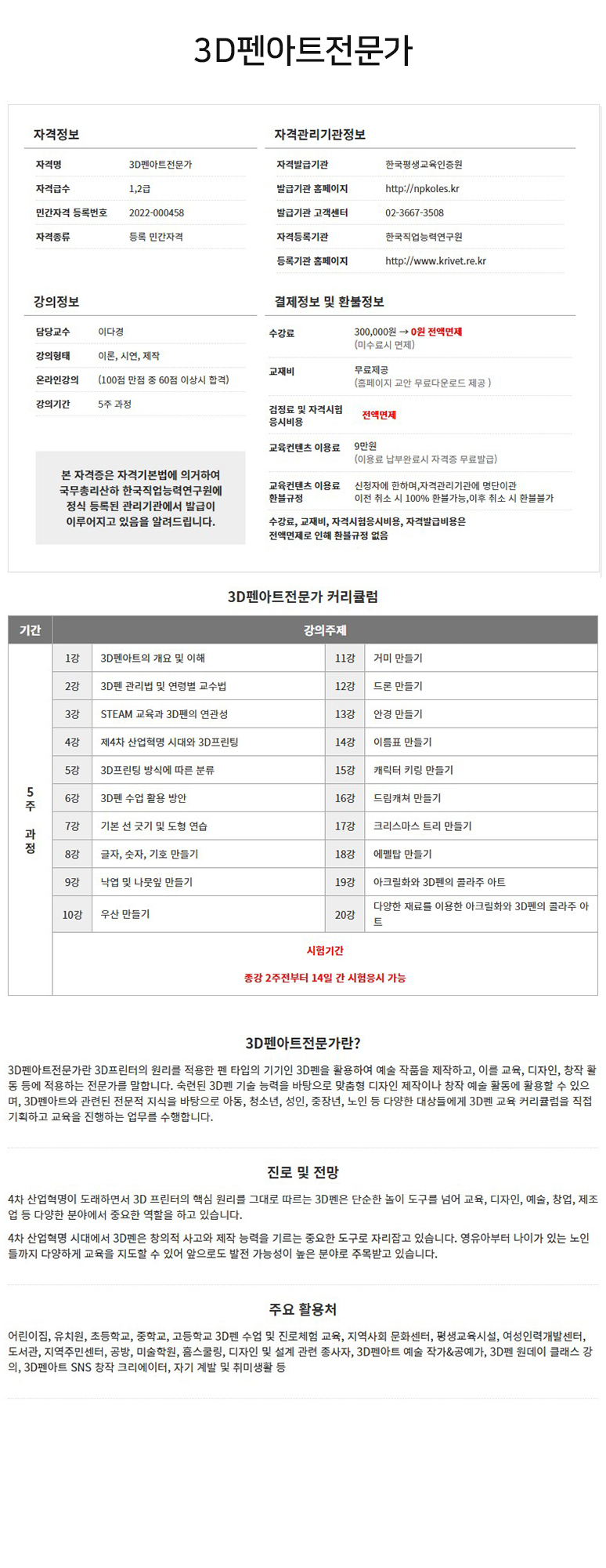 ¤ý¼ö°·á : ¤ý±³Àçºñ : ¹«·áÁ¦°ø(±³¾È ¹«·á´Ù¿î·Îµå Á¦°øÀ¸·Î ÀÎÇÑ È¯ºÒ±ÔÁ¤ ¾øÀ½) ¤ý°ËÁ¤·á ¹× ÀڰݽÃÇè ÀÀ½Ãºñ¿ë : Àü¾×¸éÁ¦(Àü¾×¸éÁ¦·Î ÀÎÇÑ È¯ºÒ±ÔÁ¤ ¾øÀ½) ¤ý±³À°ÄÁÅÙÃ÷ÀÌ¿ë·á : 9¸¸¿ø(ÀÌ¿ë·á ³³ºÎ¿Ï·á½Ã ÀÚ°ÝÁõ¹«·á¹ß±Þ) ¤ý±³À°ÄÁÅÙÃ÷ ÀÌ¿ë·á ȯºÒ±ÔÁ¤ : ½ÅûÀÚ¿¡ ÇÑÇϸç, Àڰݰü¸®±â°ü¿¡ ¸í´ÜÀ̰ü ÀÌÀü Ãë¼Ò ½Ã 100% ȯºÒ°¡´É, ÀÌÈÄ Ãë¼Ò ÀÌÈÄ Ãë¼Ò ¶Ç´Â °³ÀÎÀڰݹøÈ£¸¦ º»ÀÎÈ®ÀÎÇÑ ÈÄ È¯ºÒºÒ°¡ |