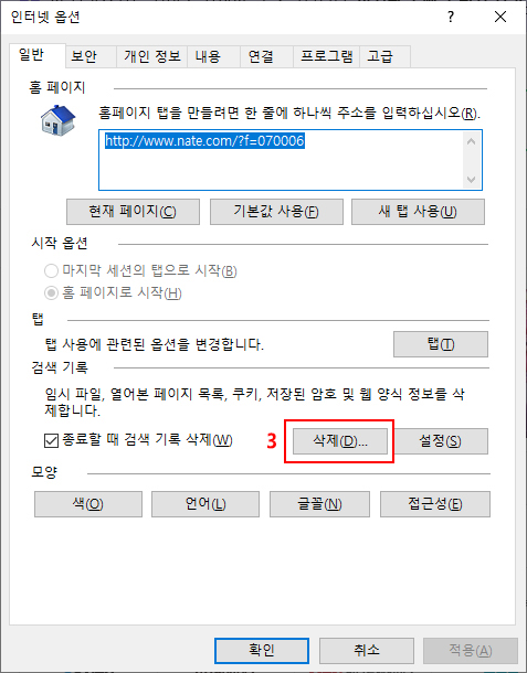 2. ¡®°³ÀÎÁ¤º¸ º¸È£¡¯ ÅÇ Å¬¸¯ ÈÄ ¡®ÀÎÅÍ³Ý »ç¿ë ±â·Ï »èÁ¦¡¯¸¦ Ŭ¸¯Çϼ¼¿ä.
